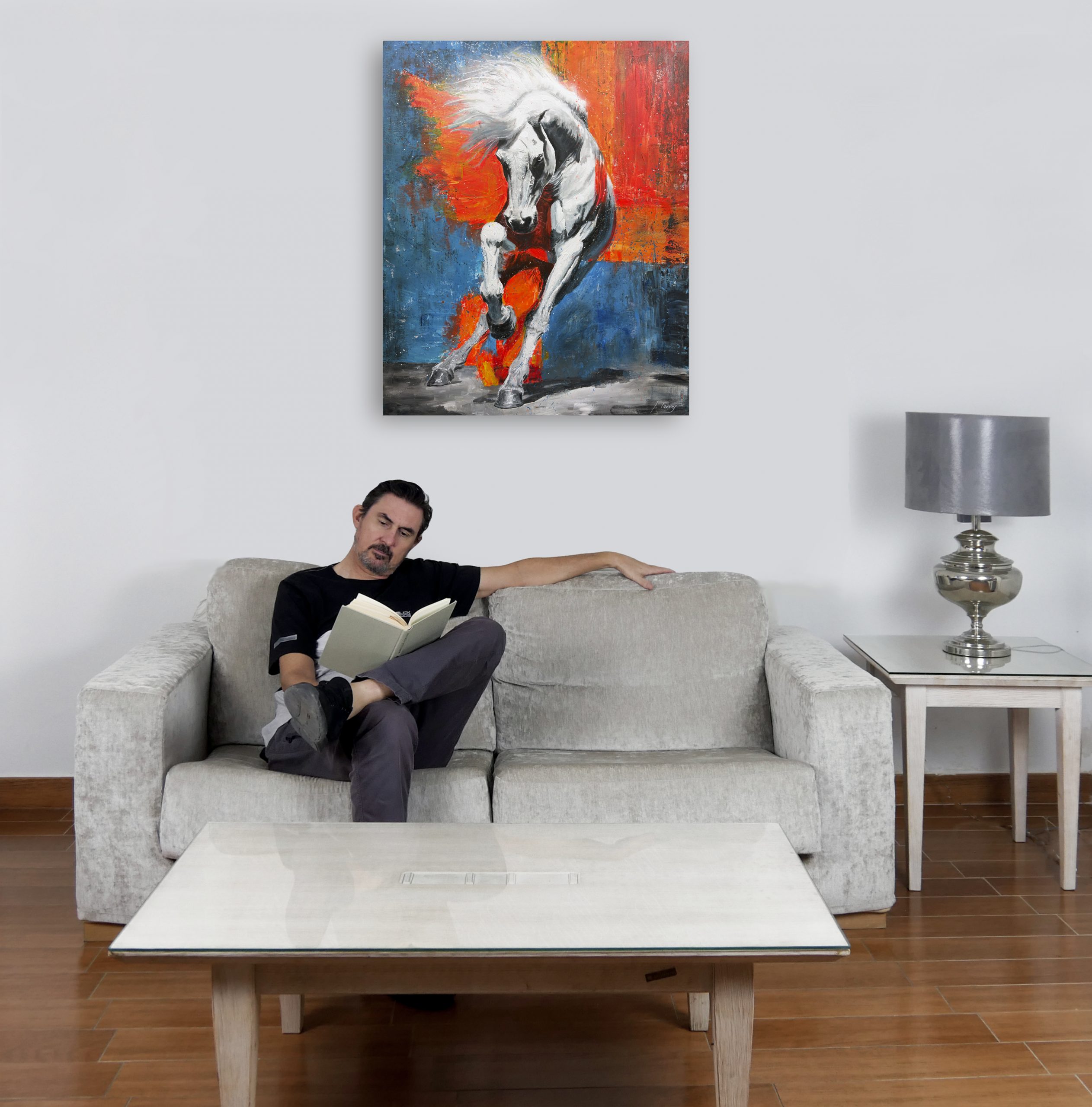 Para mí, esta obra no es solo un retrato equino. Al concebirla, la veía como una representación de la fuga o el quiebre. Este caballo no está posando; está en plena acción, con una expresión concentrada que sugiere más una huida o una necesidad imperiosa de avanzar que un simple galope.