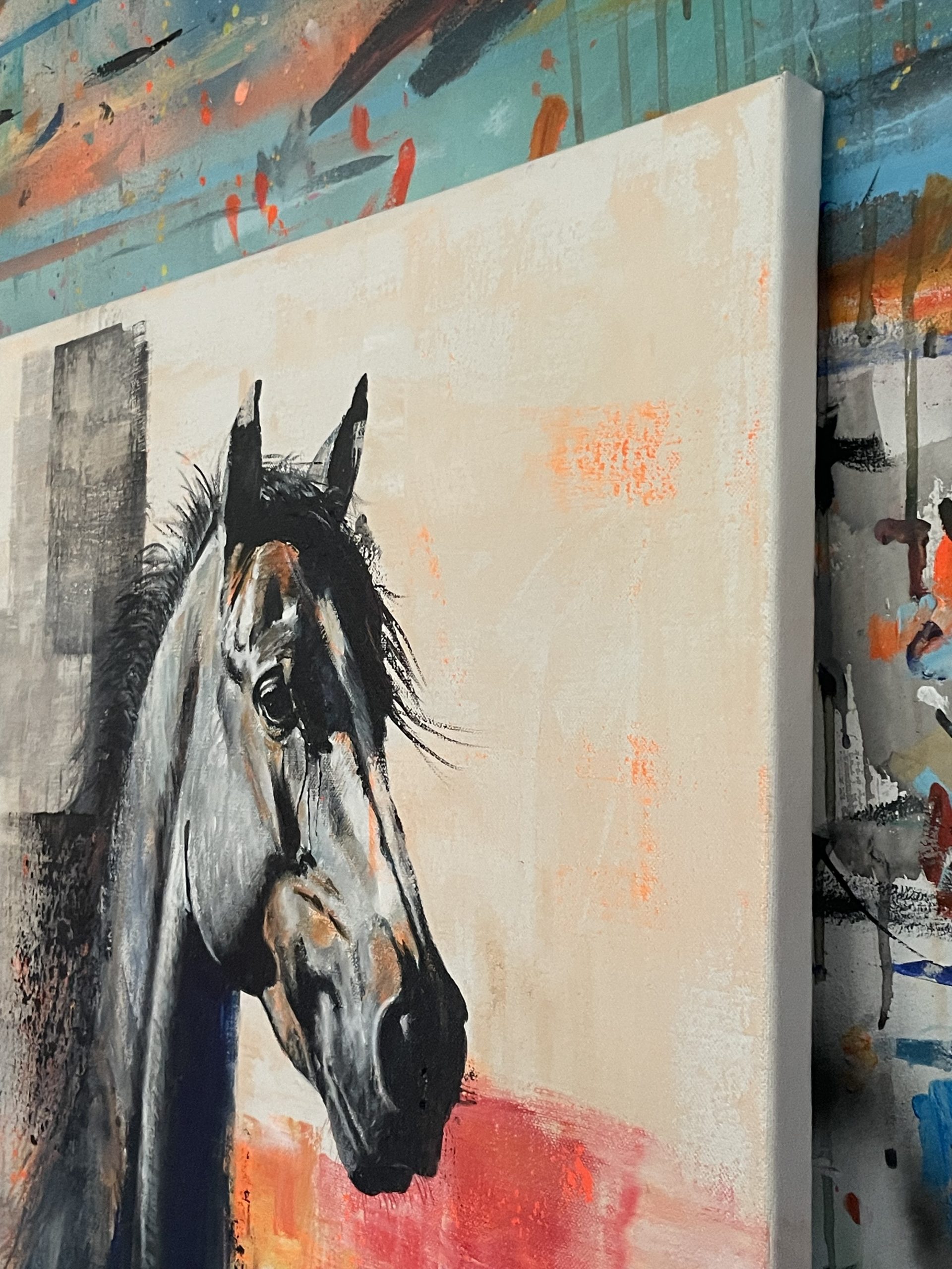 Esta pieza no solo refleja la elegancia del caballo, sino también su espíritu indomable, capturado a través de una lente contemporánea. “Equino” es una adición cautivadora a cualquier colección de arte, invitando al espectador a contemplar la belleza y la majestuosidad del mundo equino.