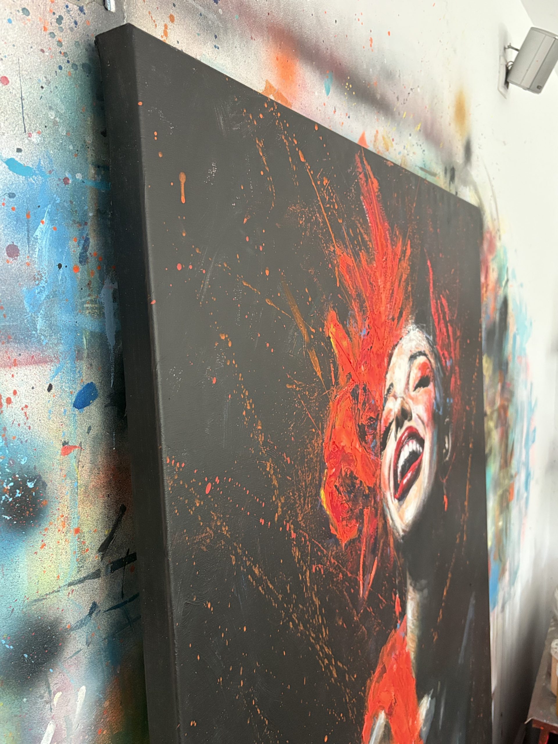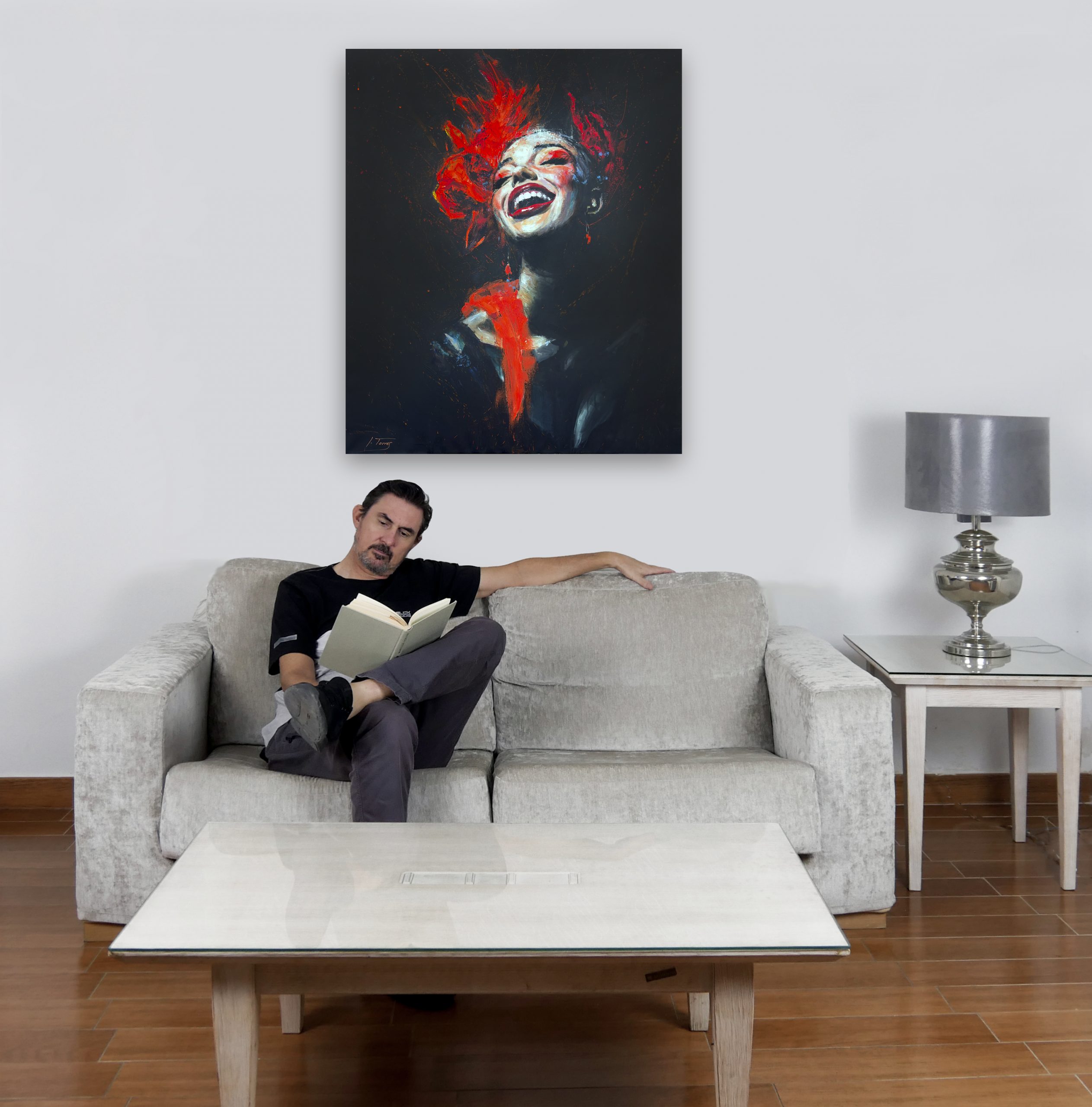 Lo que se percibe es una fuerza vital innegable. Hay una confianza en su postura, en cómo echa la cabeza hacia atrás, entregándose por completo al momento. Es un recordatorio de la belleza que hay en dejarse llevar, en la expresión sin filtros. Al final, más allá de cualquier narrativa concreta, lo que busco transmitir es esa sensación: la de una alegría contagiosa y radiante que, espero, toque a quien la observe.
