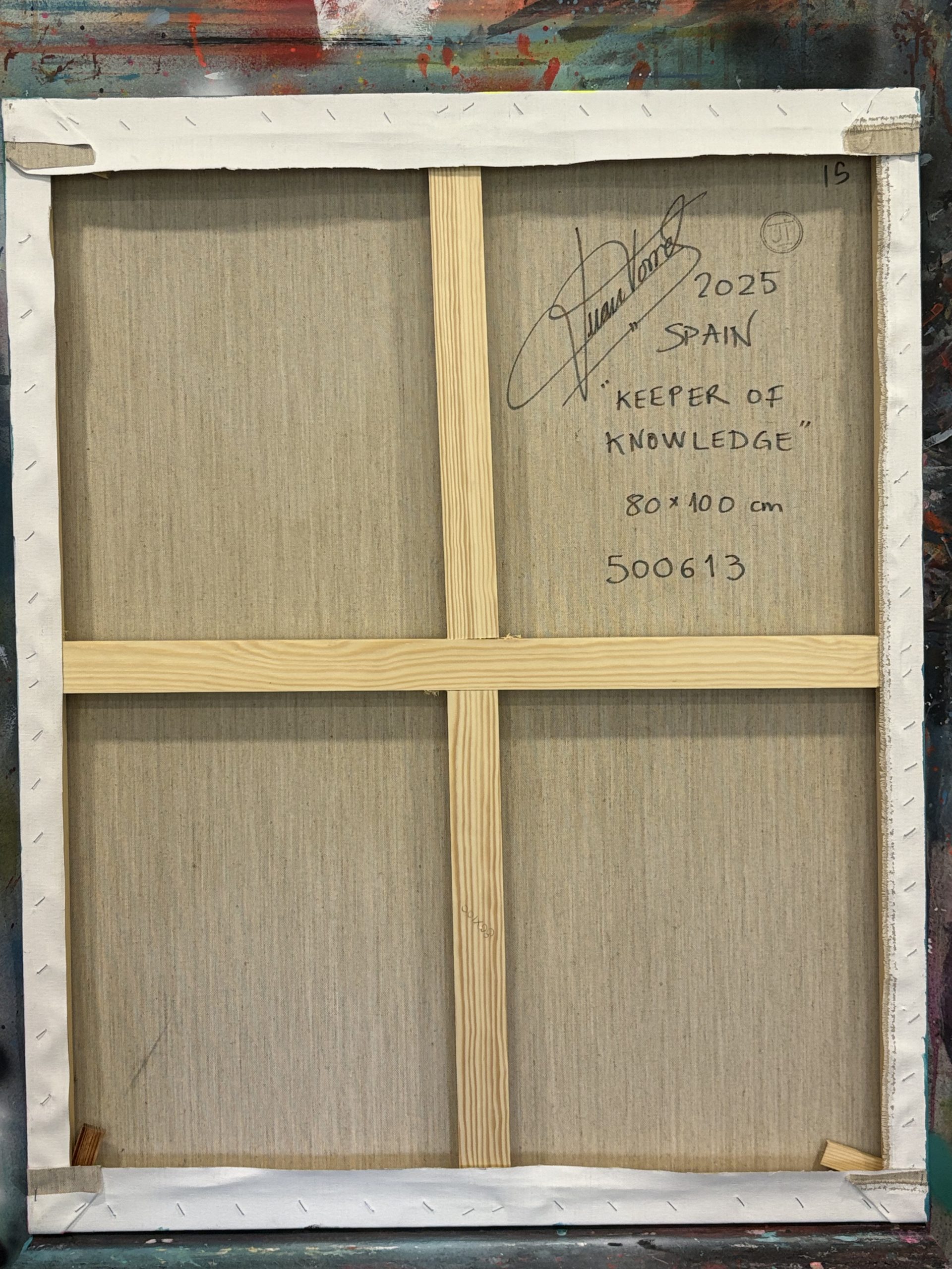 Al contemplar esta obra, no veo simplemente un retrato. Veo una presencia que fue tomando forma en el lienzo, casi por voluntad propia. Lo titulé "Keeper of Knowledge" (Guardián del Saber) porque, más que pintar un rostro, sentía que estaba tratando de capturar la esencia de una memoria ancestral.