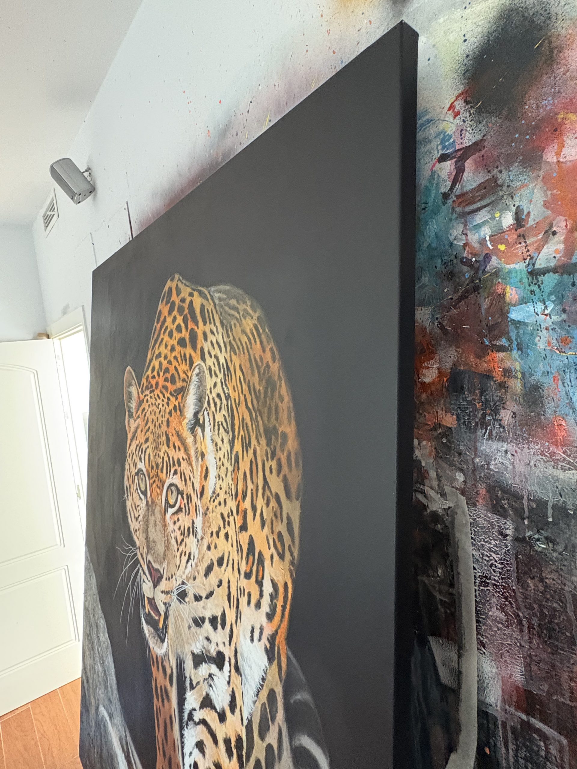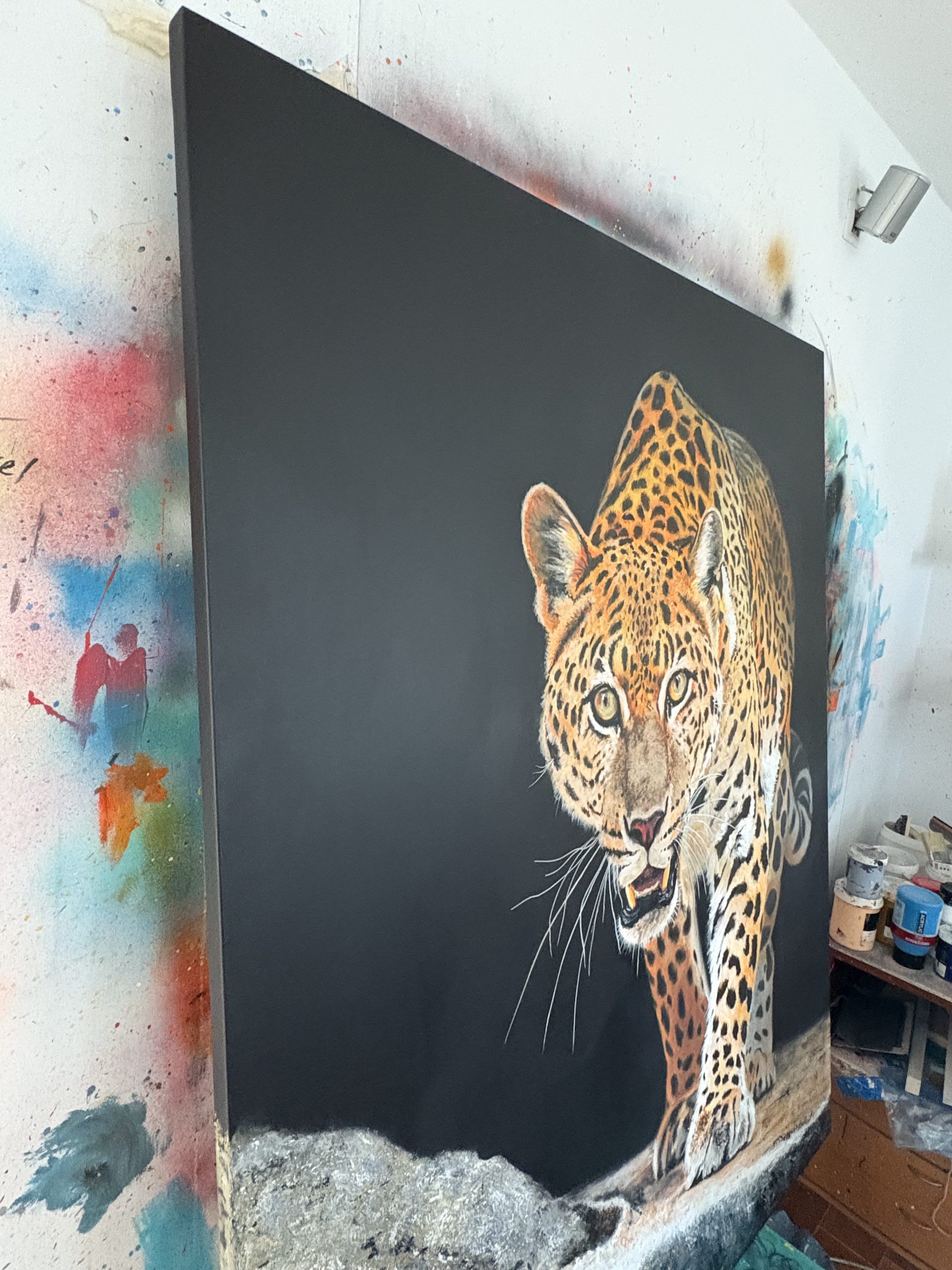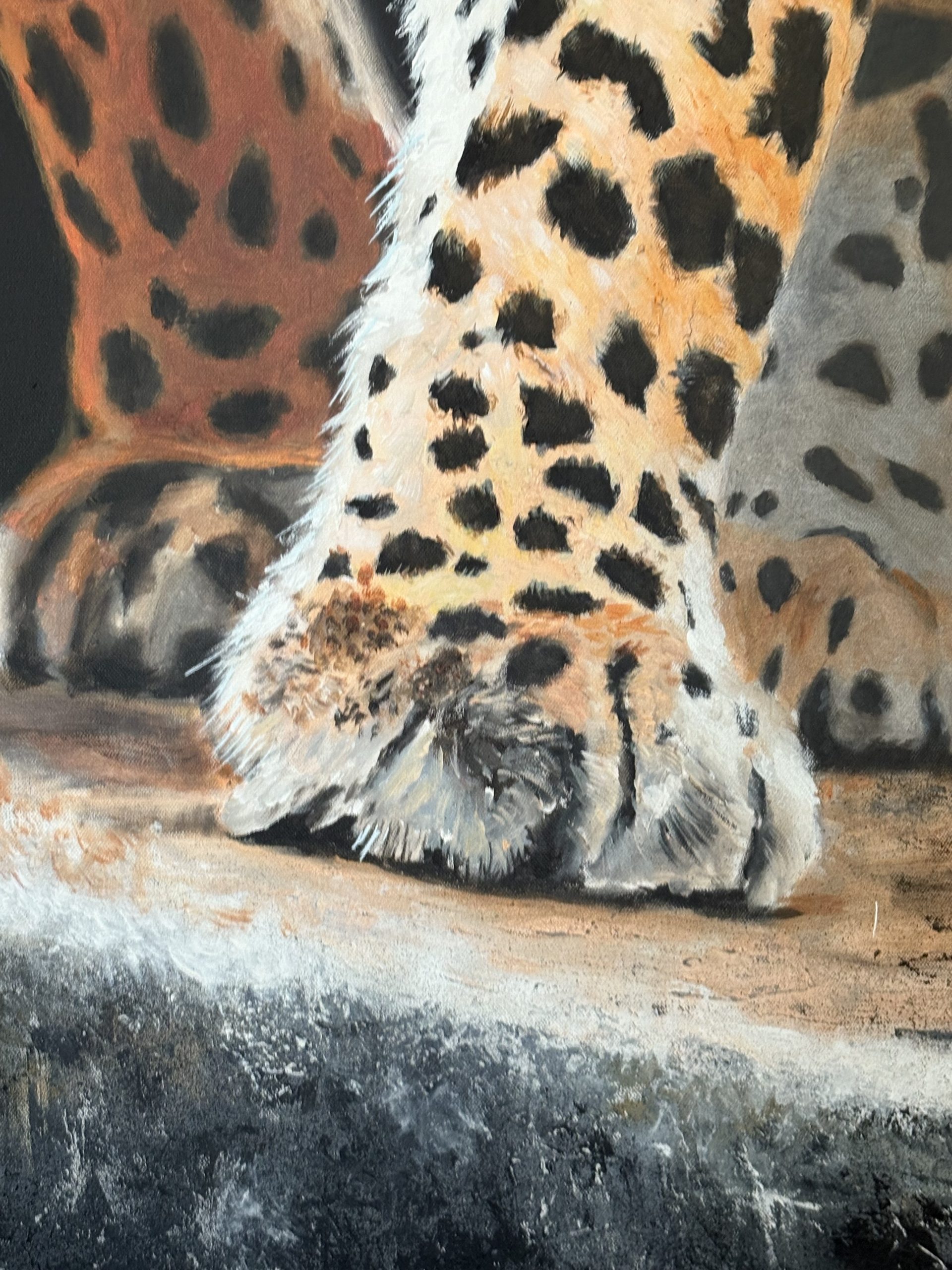 Con esta obra he buscado capturar la esencia cruda y primigenia de la naturaleza a través de la mirada intensa y amenazante de este majestuoso leopardo. Cada pincelada ha sido un intento de plasmar la fuerza contenida, la agilidad y el peligro que emanan de este félido, maestro de la supervivencia en su hábitat.