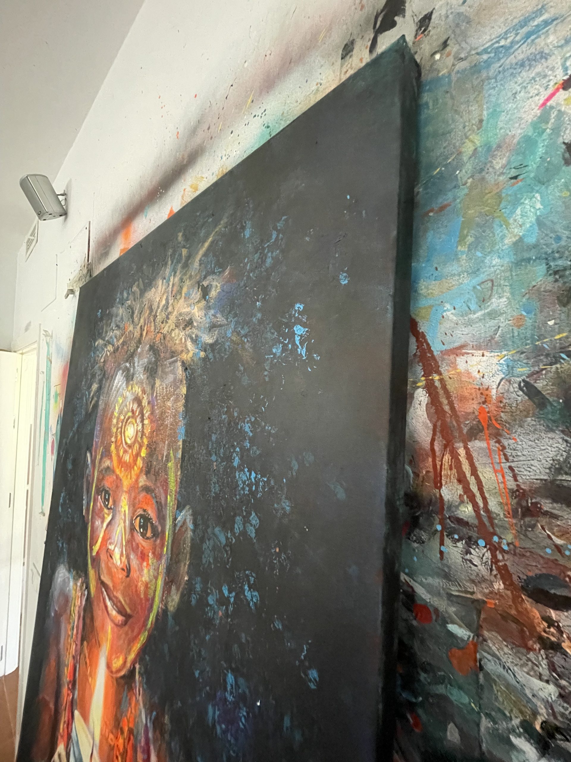 He utilizado pinceladas dinámicas y colores vivos para aportar una sensación de movimiento y vida a la obra. La combinación de simbolismo cultural y temas universales como la inocencia, la luz en la oscuridad y el acto de ofrecer, invita al espectador a reflexionar y encontrar su propio significado en la escena.