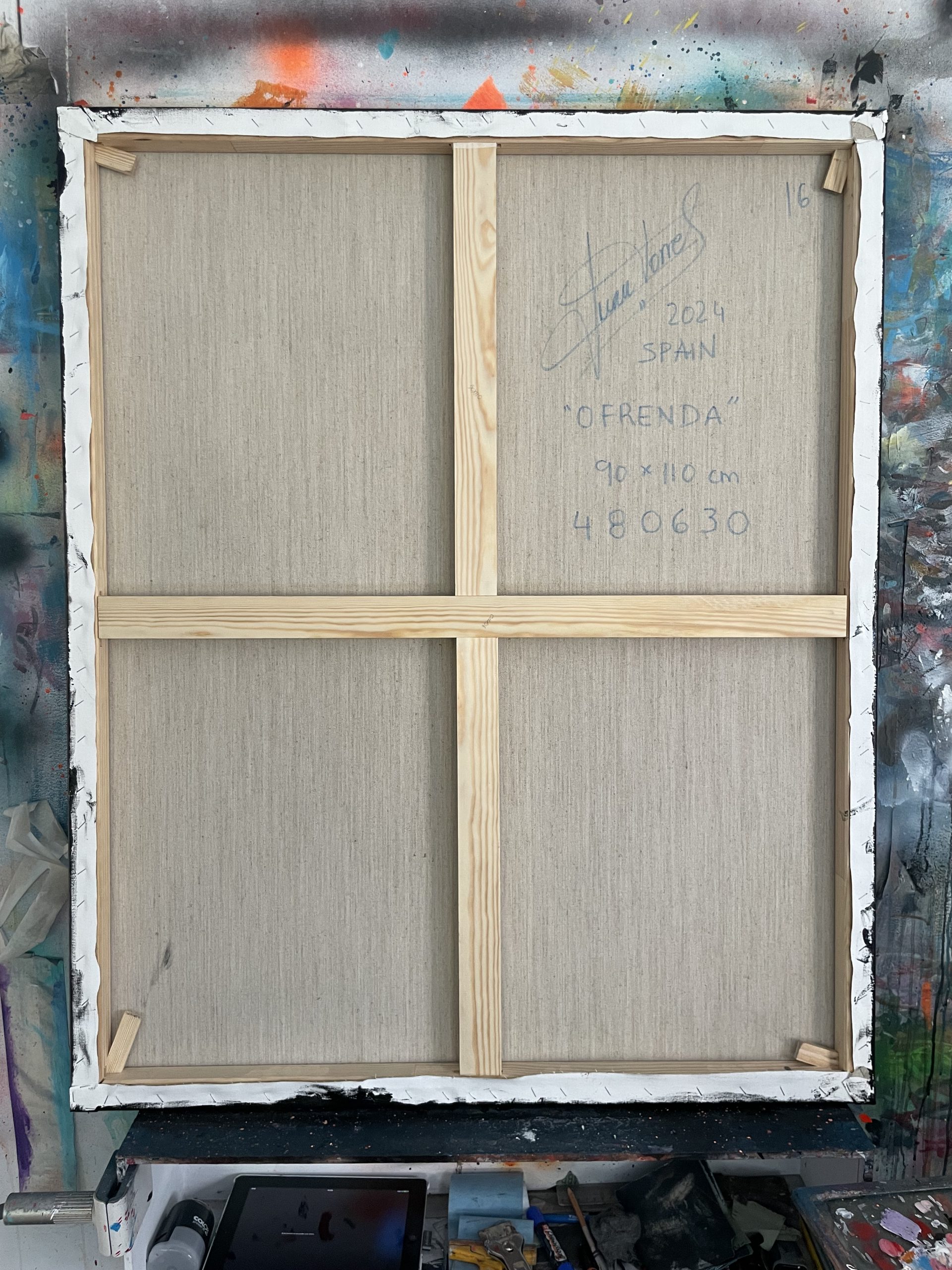 La obra invita a contemplar la conexión entre lo divino y lo terrenal, entre el espíritu y la materia. Es un recordatorio de que cada uno de nosotros tiene algo que ofrecer, una luz única que compartir con el mundo. “Ofrenda” es un misterio que cada observador está invitado a descifrar, una conversación silenciosa con el alma del artista y, a su vez, con la propia.