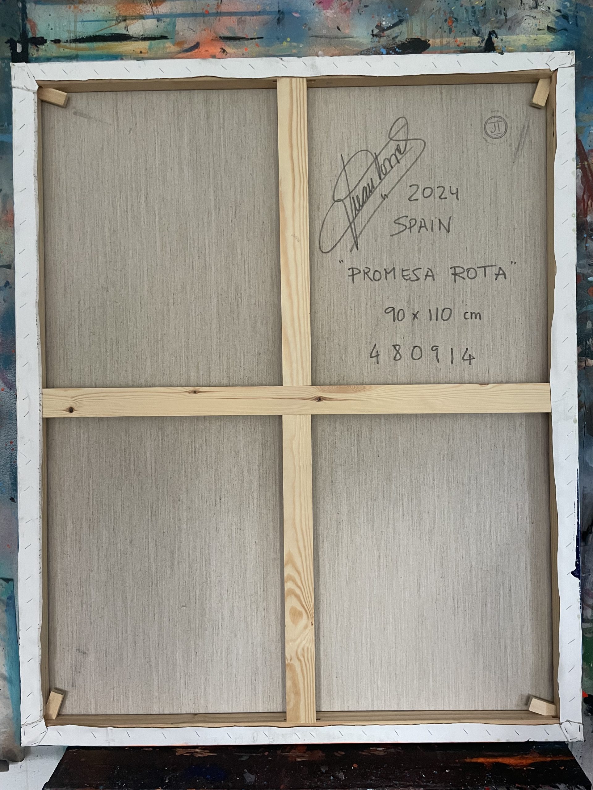 “Promesa Rota” es una obra que captura la complejidad de las emociones humanas a través del retrato de una joven de gran belleza. En el centro de la composición, su rostro se destaca con una expresión que mezcla tristeza y fortaleza. Sus ojos, llenos de lágrimas contenidas, reflejan un profundo dolor, pero también una resiliencia y una dignidad que trascienden su tristeza.