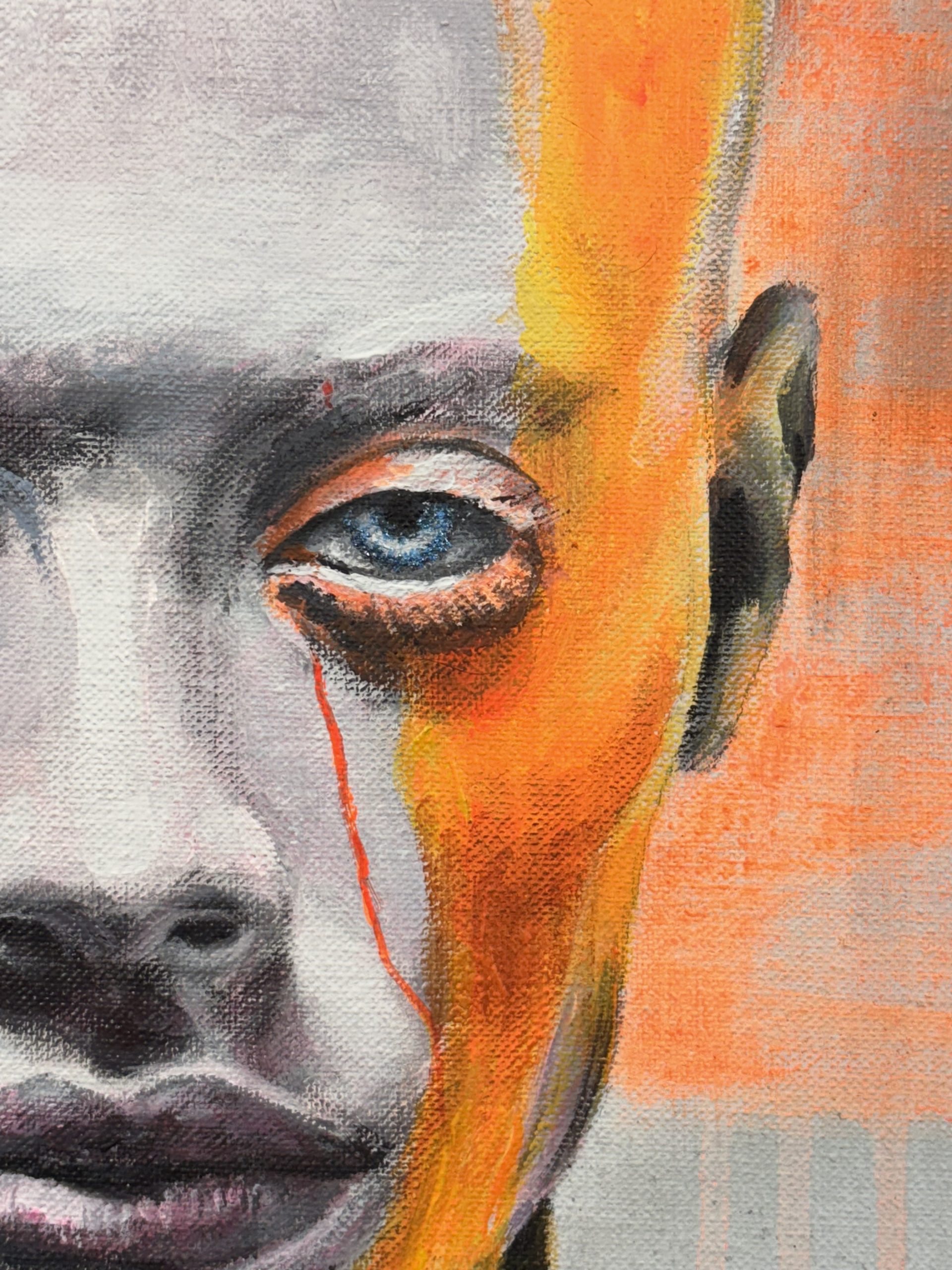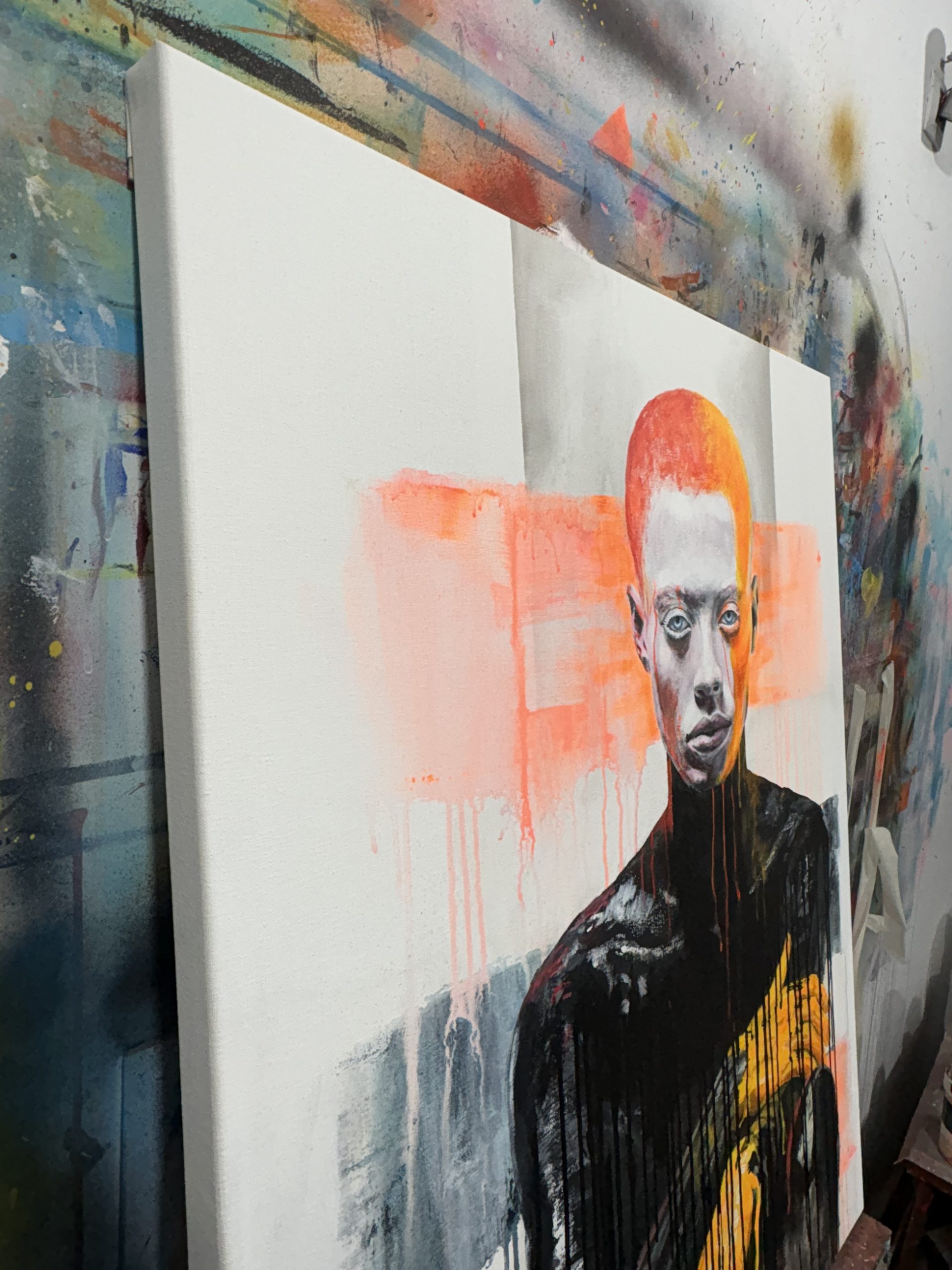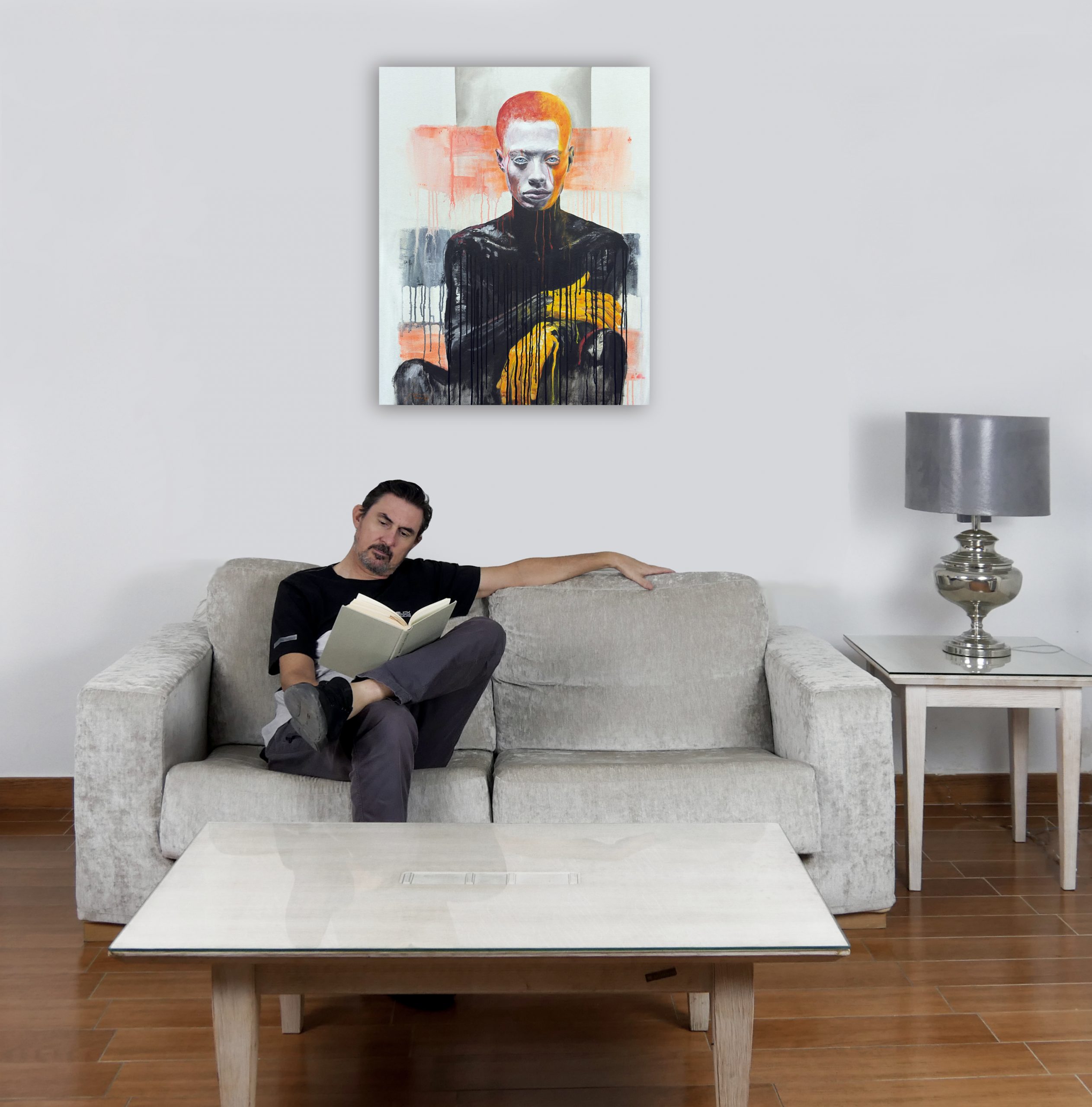 En cuanto a las líneas de pintura que gotean, esos trazos caóticos y fluidos, son la expresión de la emoción que se derrama, de la interioridad que busca salir. La idea es que sean como cicatrices, pero también como canales para la energía.