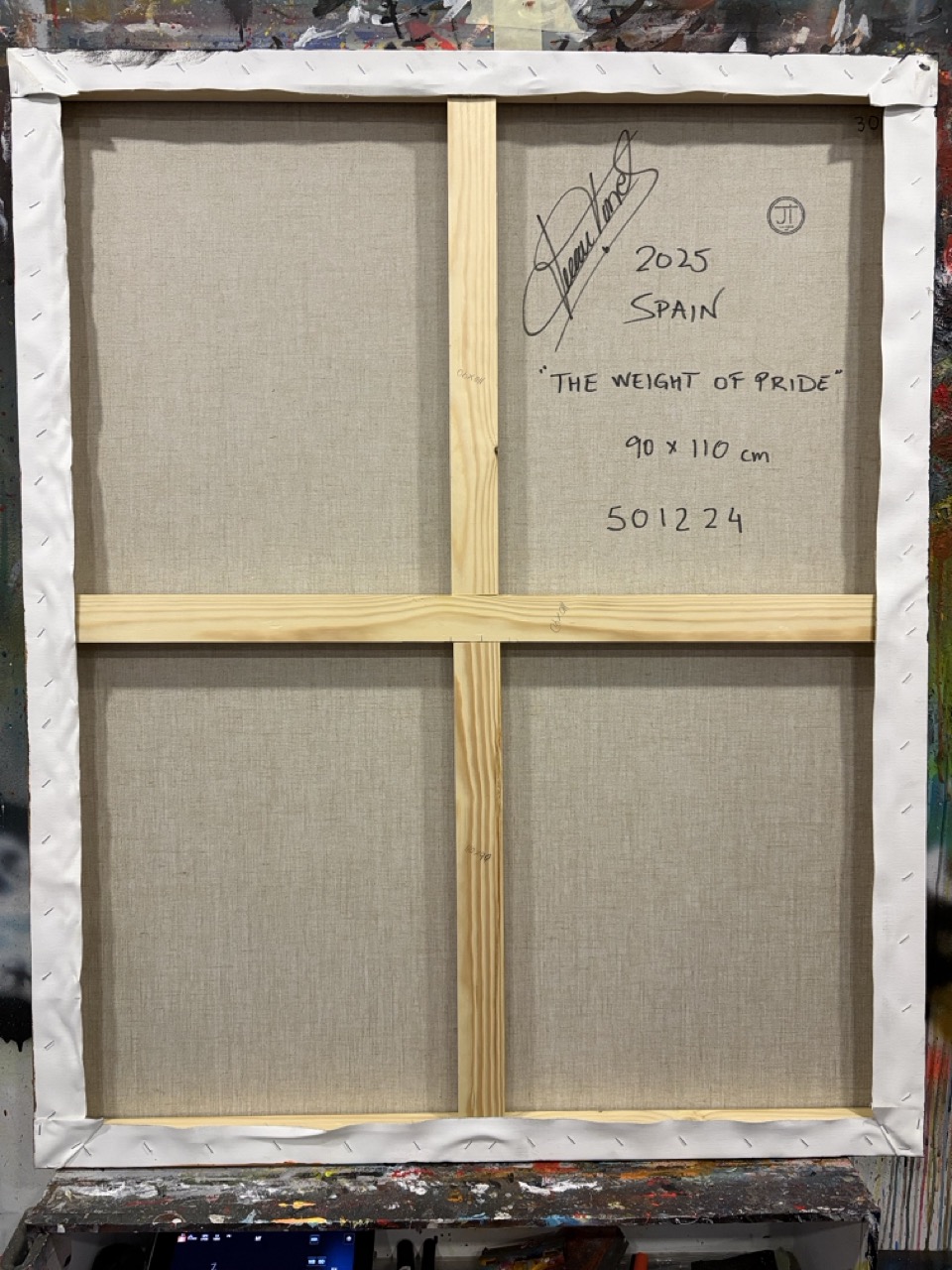 Con este cuadro no intento ofrecer una respuesta moral sobre si el orgullo es virtud o defecto; me interesa más el peso que tiene en la forma en que nos presentamos al mundo. La figura carga ese peso como si fuese a la vez coronación y condena, y el espectador queda invitado a decidir si está viendo a alguien que se protege o a alguien que se esconde detrás de su propio orgullo.