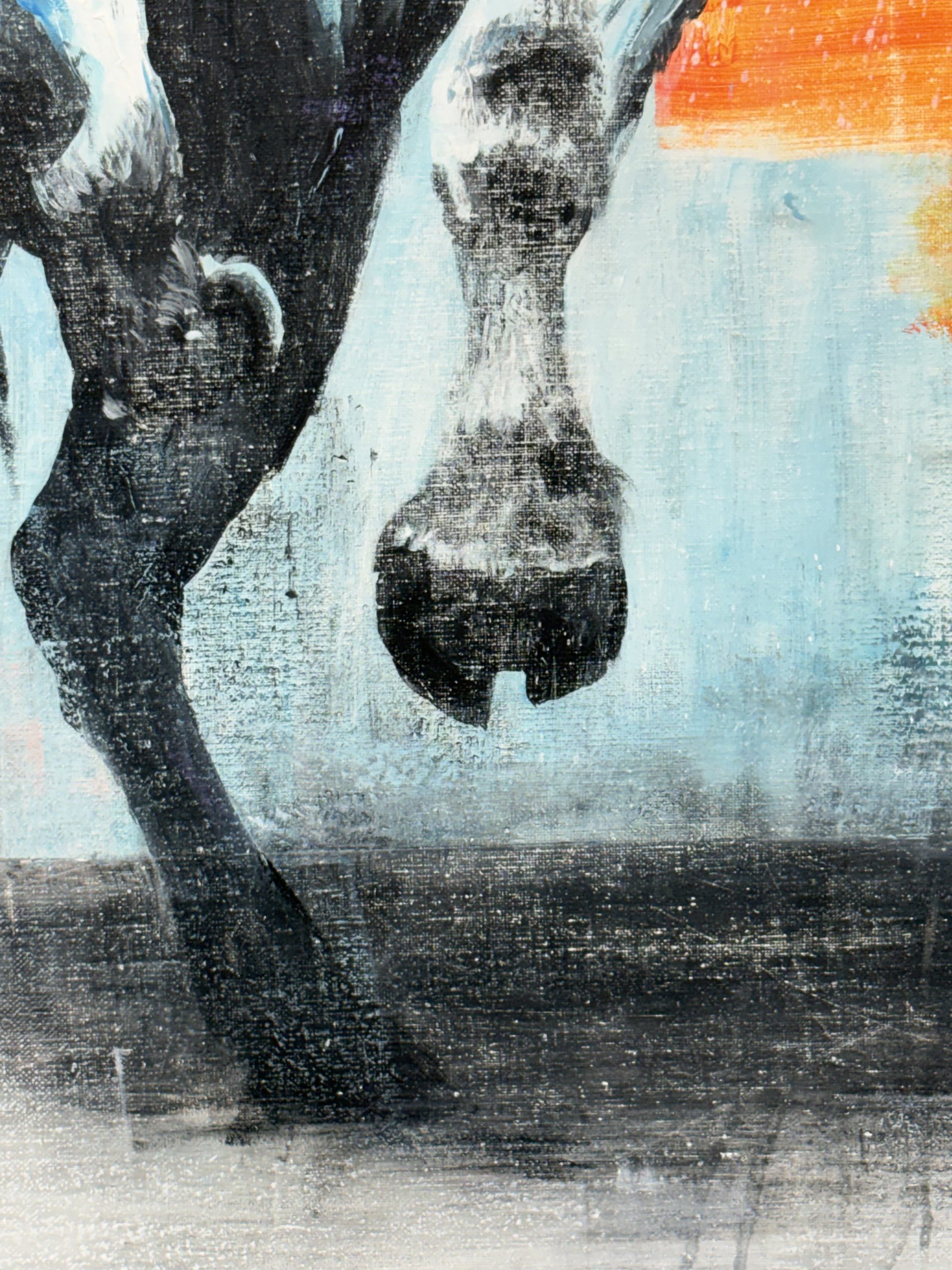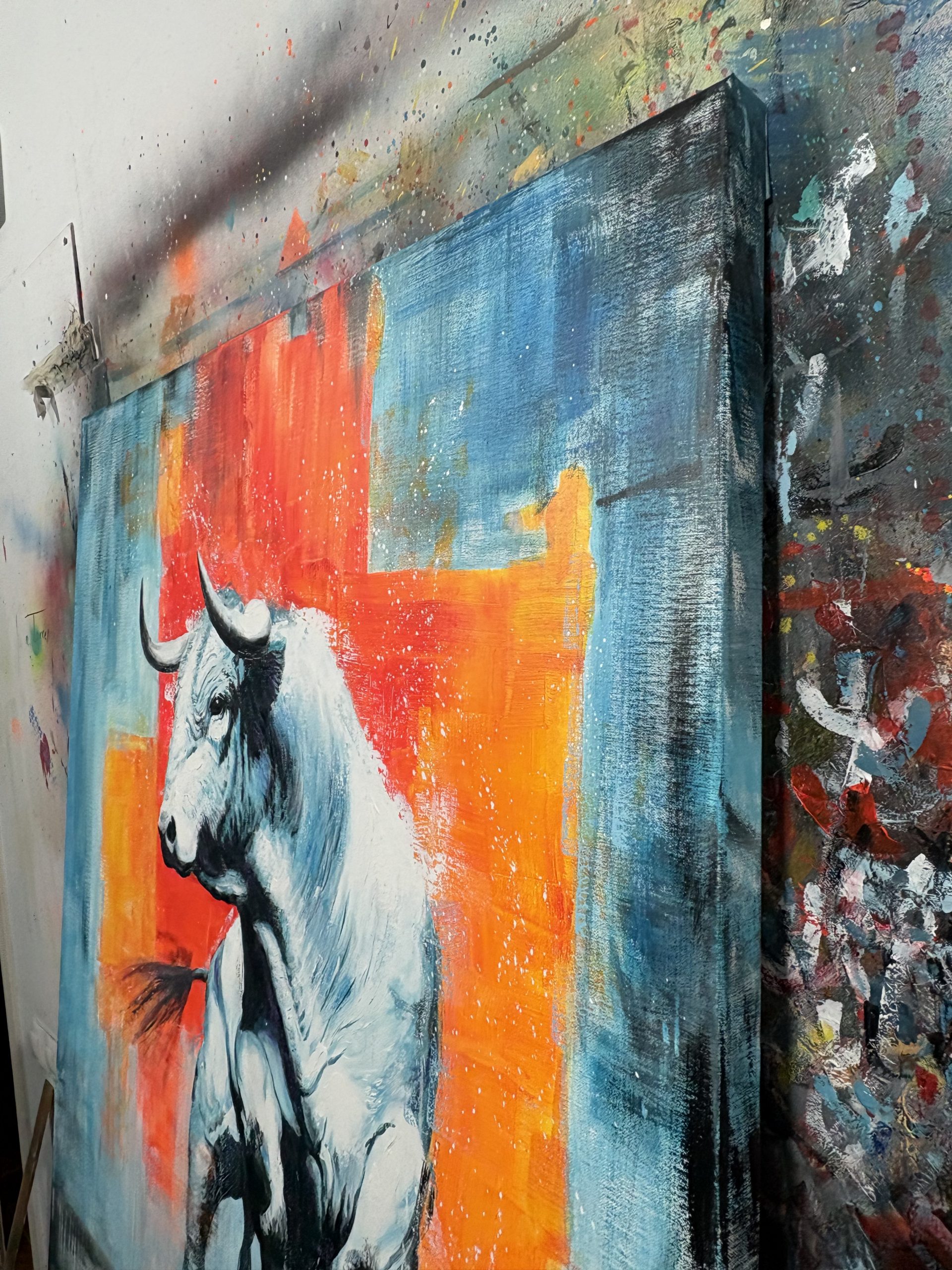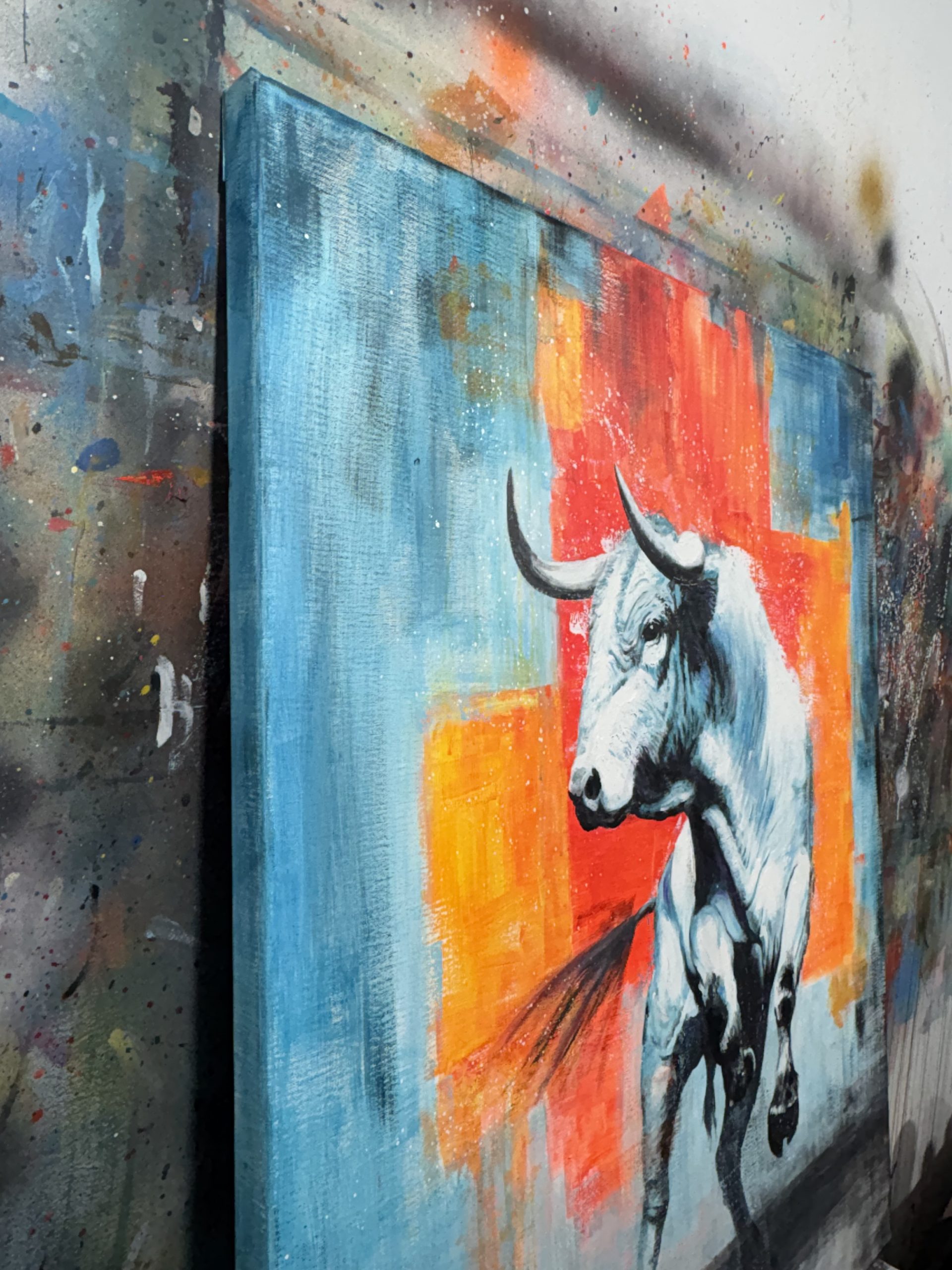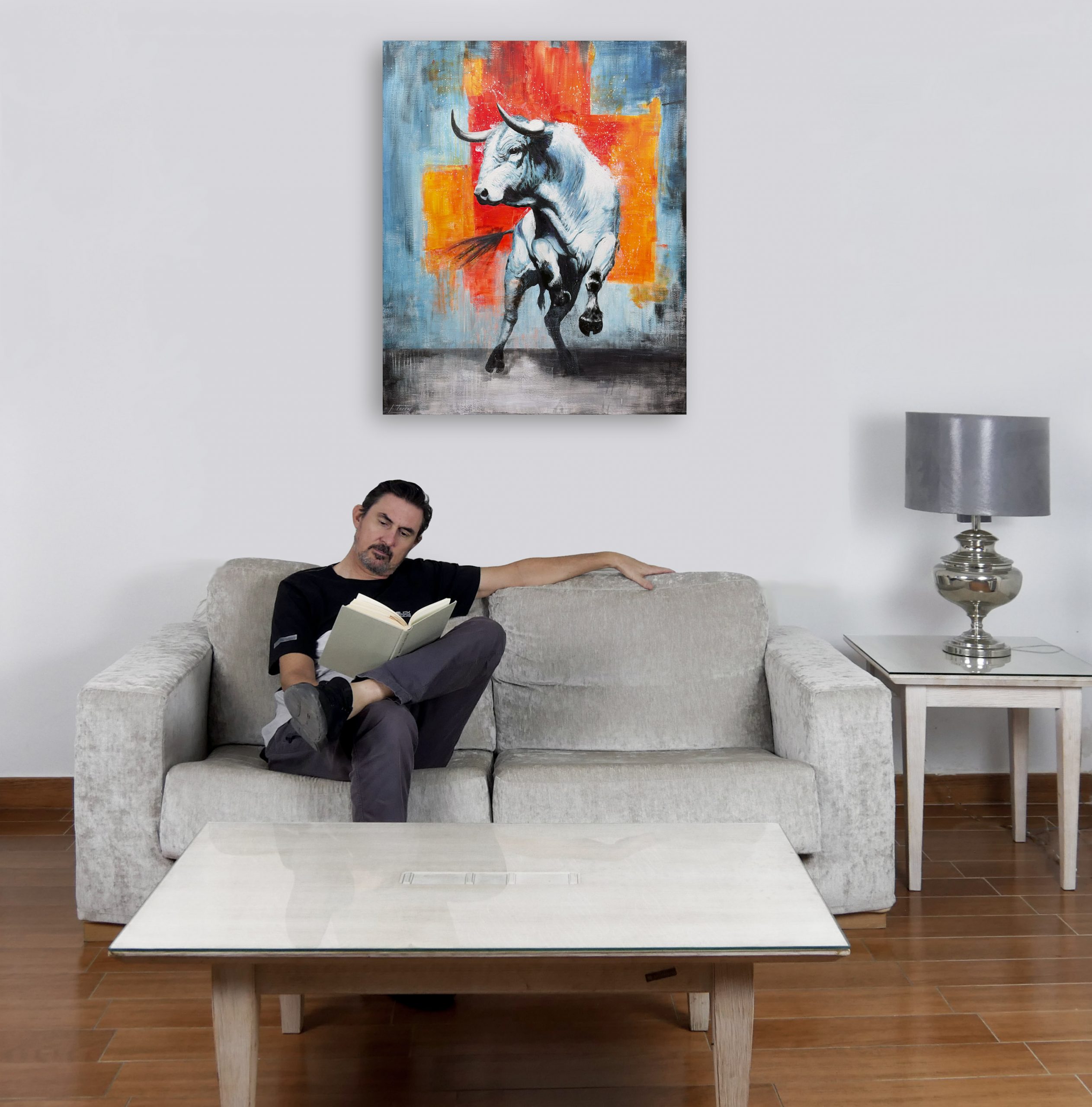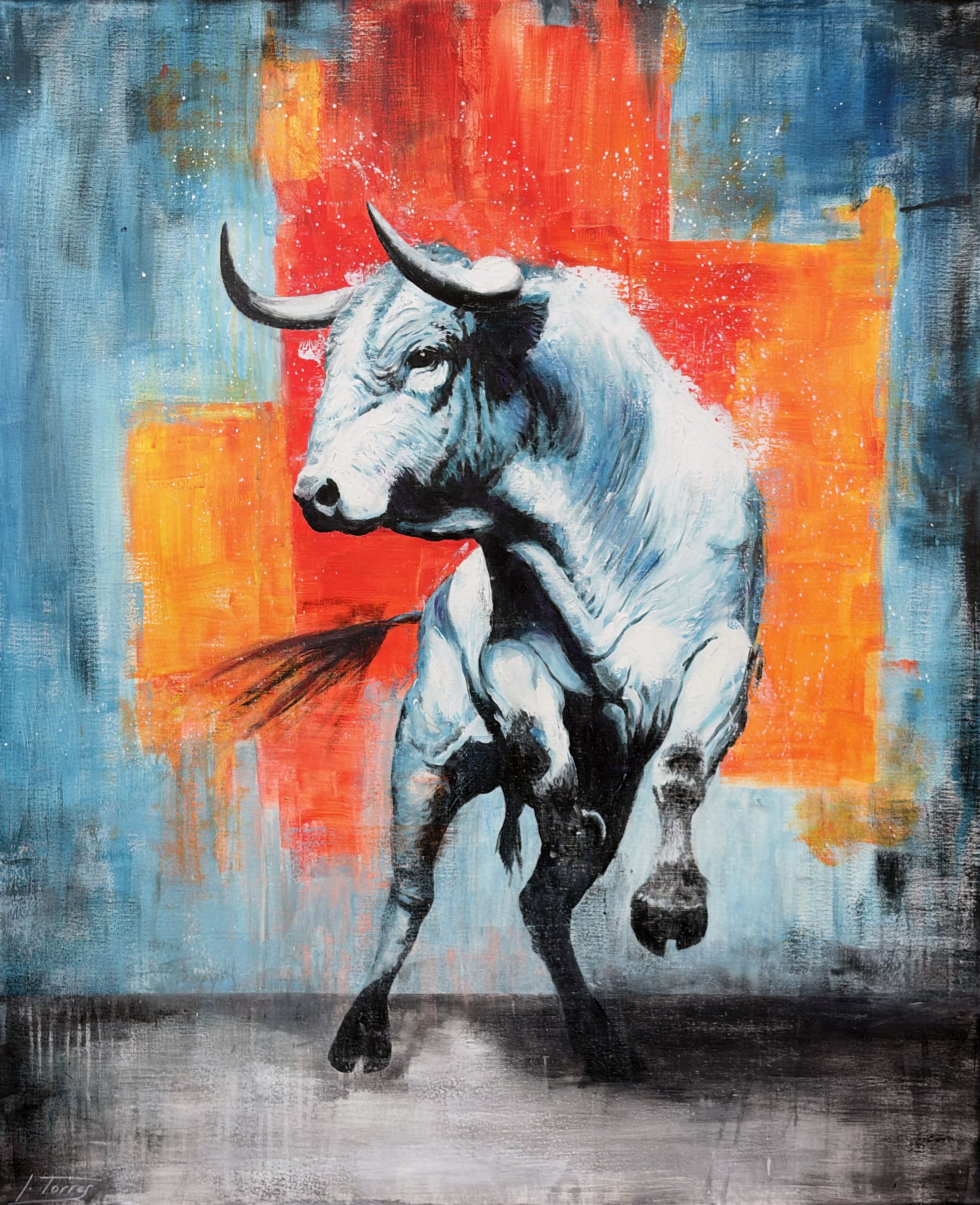 Al titular esta obra Tótem, establezco que no he retratado un simple animal, sino un símbolo de poder que conecta lo terrenal con lo mítico. He construido este toro como un ídolo; al representarlo en blancos espectrales y lunares, lo alejo de la realidad inmediata del campo para convertirlo en una entidad casi divina, una estatua que ha cobrado vida. No es el toro oscuro de la lidia ni una escena costumbrista, sino un arquetipo de resistencia y virilidad que trasciende su propia biología. Es el concepto de "El Toro" como fuerza purificada que exige respeto y cautela.